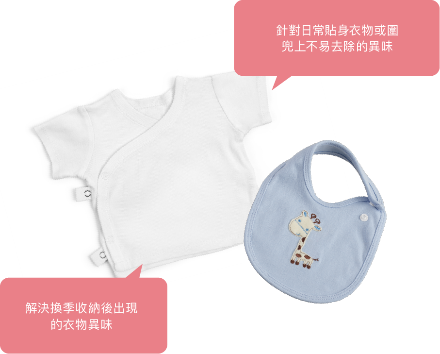 新生兒新陳代謝旺盛,皮脂分泌也較多,這些皮脂往往 會悄悄殘留在衣物纖維中。針對這類難以透過一般洗衣 清除的皮脂異味,或收納期間產生的悶味,arau.baby 愛樂寶寶貝無添加衣物消臭去漬護衣劑能發揮出色的除 臭效果,有效去除惱人異味。